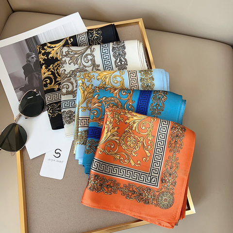 2025 Nieuwe Lente Fashion Designer 70Cm Satijn Zijde Haar Sjaal Elegant Dames Custom Print Zijden Hals Sjaal Hoofddoek